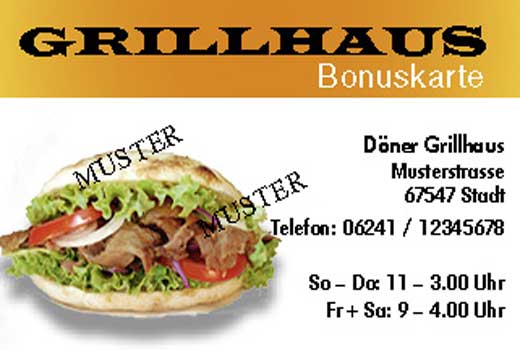 Selbstverständlich können Sie auch Ihr eigenes Logo sowie die Adresse auf die Bonuskarte drucken lassen. Einfach per Mail senden.